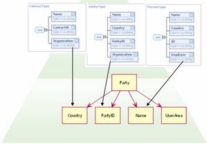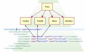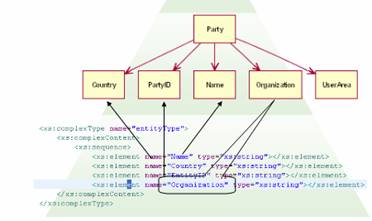• From a new schema we find that the “entity” is similar to Party except it has an additional property. It includes a description of what organization the party belongs to.