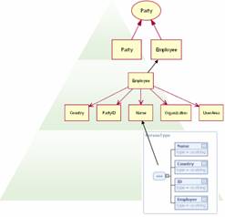 Here, by using the same term we have used the layers of abstraction to identify the fact that there are similarities between “Party” and “Employee” but they must have different data representations.